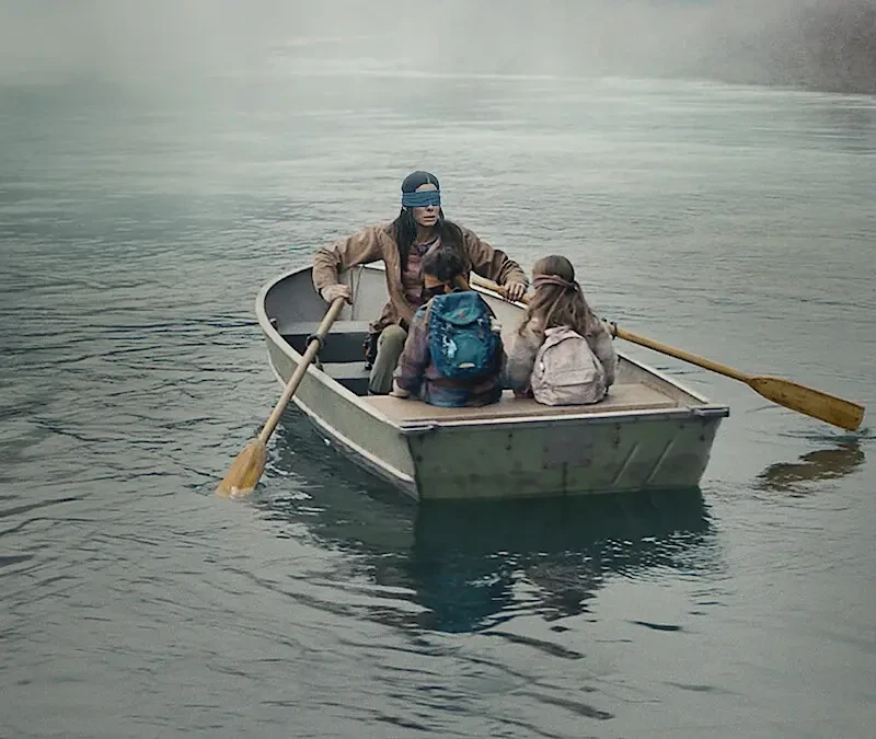 A trama apresenta um cenário apocalíptico onde entidades invisíveis levam pessoas ao suicídio quando são observadas diretamente. Para sobreviver, uma mulher precisa atravessar um rio vendada ao lado de duas crianças, tentando escapar do colapso social causado pelo fenômeno. A história alterna passado e presente para revelar o início da tragédia e o impacto psicológico nos sobreviventes.