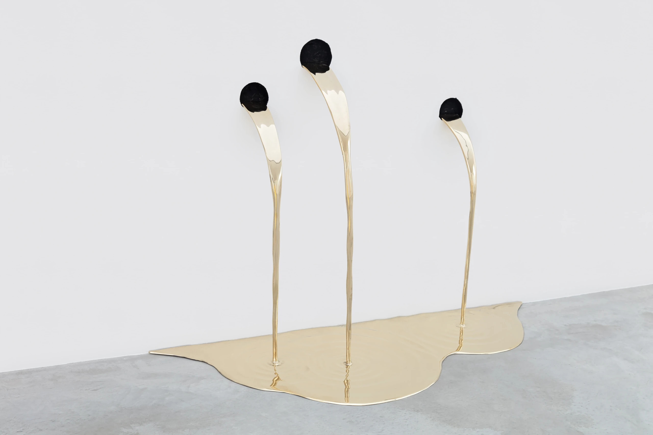 A mostra apresenta esculturas e desenhos que exploram o fogo como matéria simbólica, técnica e processo. Com obras em bronze polido e desenhos feitos com pólvora, Vanderlei Lopes investiga a tensão entre criação e destruição, o visível e o invisível, revisitando tradições da escultura e deslocando expectativas sobre o monumento e o luxo.