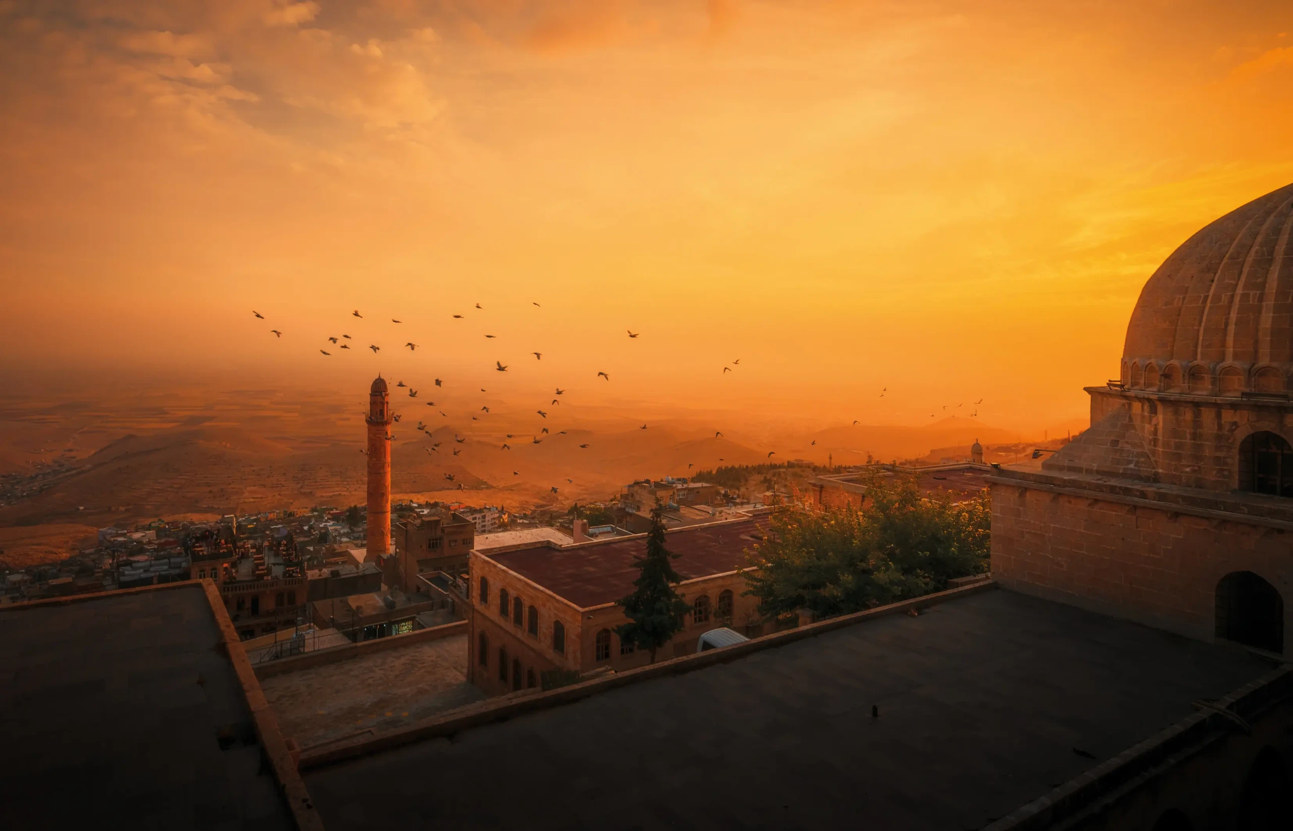 Entre seus principais marcos está o Mosteiro Deyrulzafaran, um dos mais antigos da região, além de madraças e mesquitas medievais que reforçam a longa tradição religiosa local. Nas proximidades, Midyat mantém esse legado multicultural, conhecida pelo refinado artesanato em filigrana de prata (telkari) e pelas casas de pedra que evocam narrativas ancestrais.