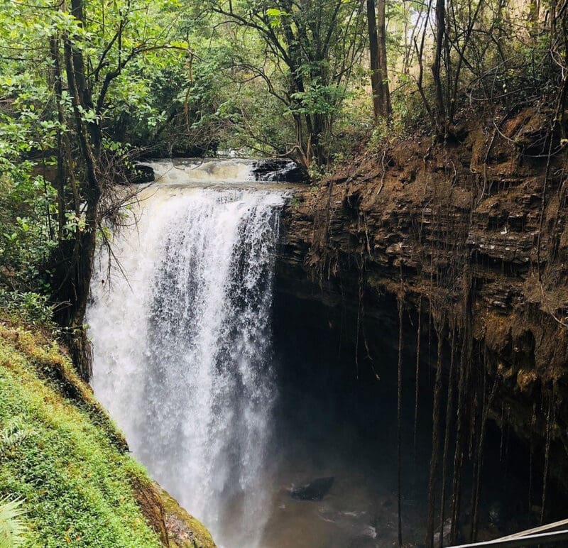Uma das atrações mais impressionantes de Mambaí, a Cachoeira do Funil se destaca por suas águas que caem de uma altura de 50 metros, passando por dentro de uma caverna antes de desaguar. É um espetáculo natural que combina a força da água com a beleza das formações rochosas.